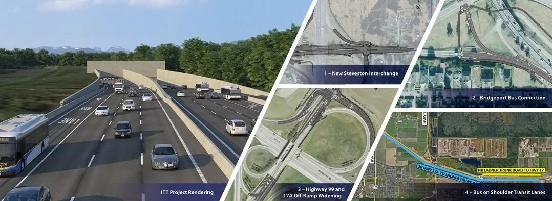 The project involves the construction of a new eight-lane immersed tube tunnel (ITT), an eight-lane Deas Island Bridge, and connections to the existing Highway 99 between Steveston Highway and Highway 17A. Additionally, the project includes temporary construction facilities and the decommissioning of both the existing George Massey Tunnel.