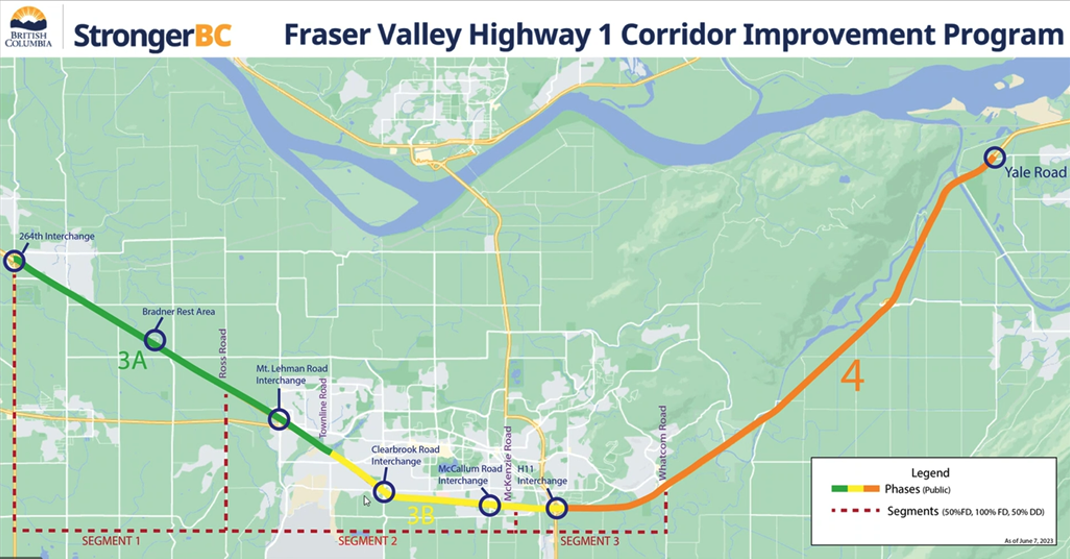 Widening and upgrading of 20 km of the TransCanada Highway, from 264th Street in Langley to Highway 11 in Abbotsford, BC. The project was divided into four major design (Design-Bid-Build) packages and two Design Build packages at the 264th/Highway 13 and Highway 11 interchanges.
